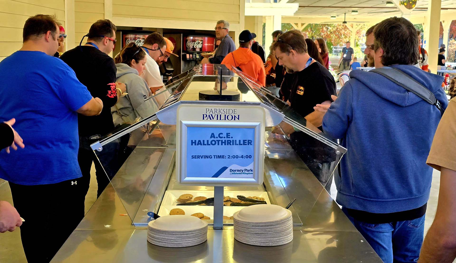 The next activity for attendees was lunch. They were treated to grilled chicken quarters, pulled pork, plenty of sides and cookies. During lunch Mike Matscherz, ACE Eastern Pennsylvania regional representative, welcomed attendees and spoke about how the event became a tremendous success. Ryan Eldredge, Dorney Park’s public relations and communications manager, answered questions about all things Dorney. At this time, everyone could also browse items available in the silent auction. The auction raised $960 for ACE’s preservation fund, archives and the National Roller Coaster Museum and Archives. As lunch was concluding, members were greeted by AlFEARdo, the Halloween-ified Dorney Park mascot, Alfundo, with whom they could take pictures!