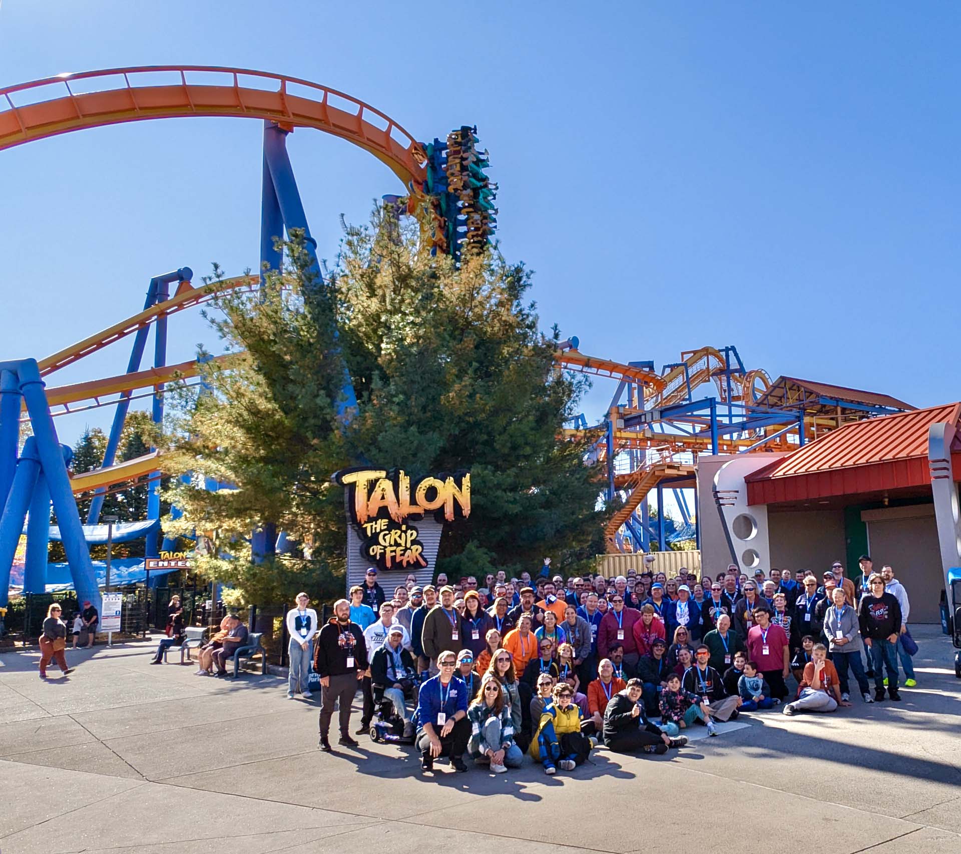 Attendees were treated to a beautiful, sunny day to enjoy all of the park’s offerings, such as a food truck rally as well as the scheduled events from the club. To begin the day, attendees started with ERT on roller coasters Talon and Wild Mouse and two flat rides, Kaleidoscope and Wave Swinger. Immediately following the first rides of the day, they came together to take a group photo in front of Talon.