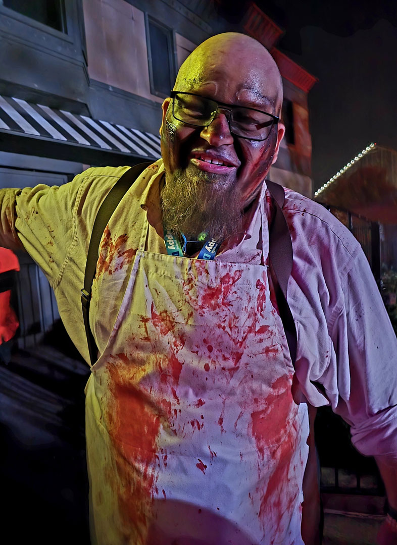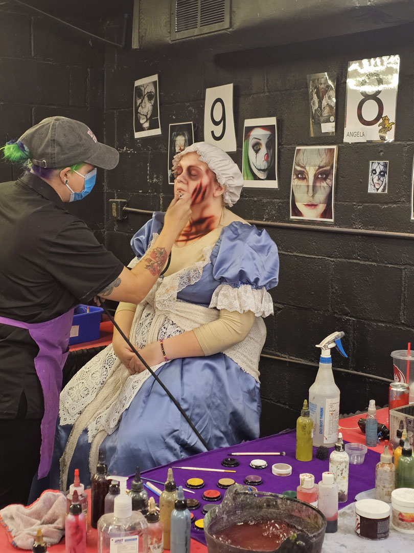 A part of what makes park Halloween events extra spooky is the costuming and special effects makeup on the scare actors who are found not just in the haunted houses but throughout the park in scare zones. Through a free raffle, a small group of attendees was selected for a haunt makeup tour and got to see the process of getting ready for the night with some of the scare actors. Each HAUNT department manager spoke to the group about their particular preparation and what it takes to execute Haunt for seven straight weeks.