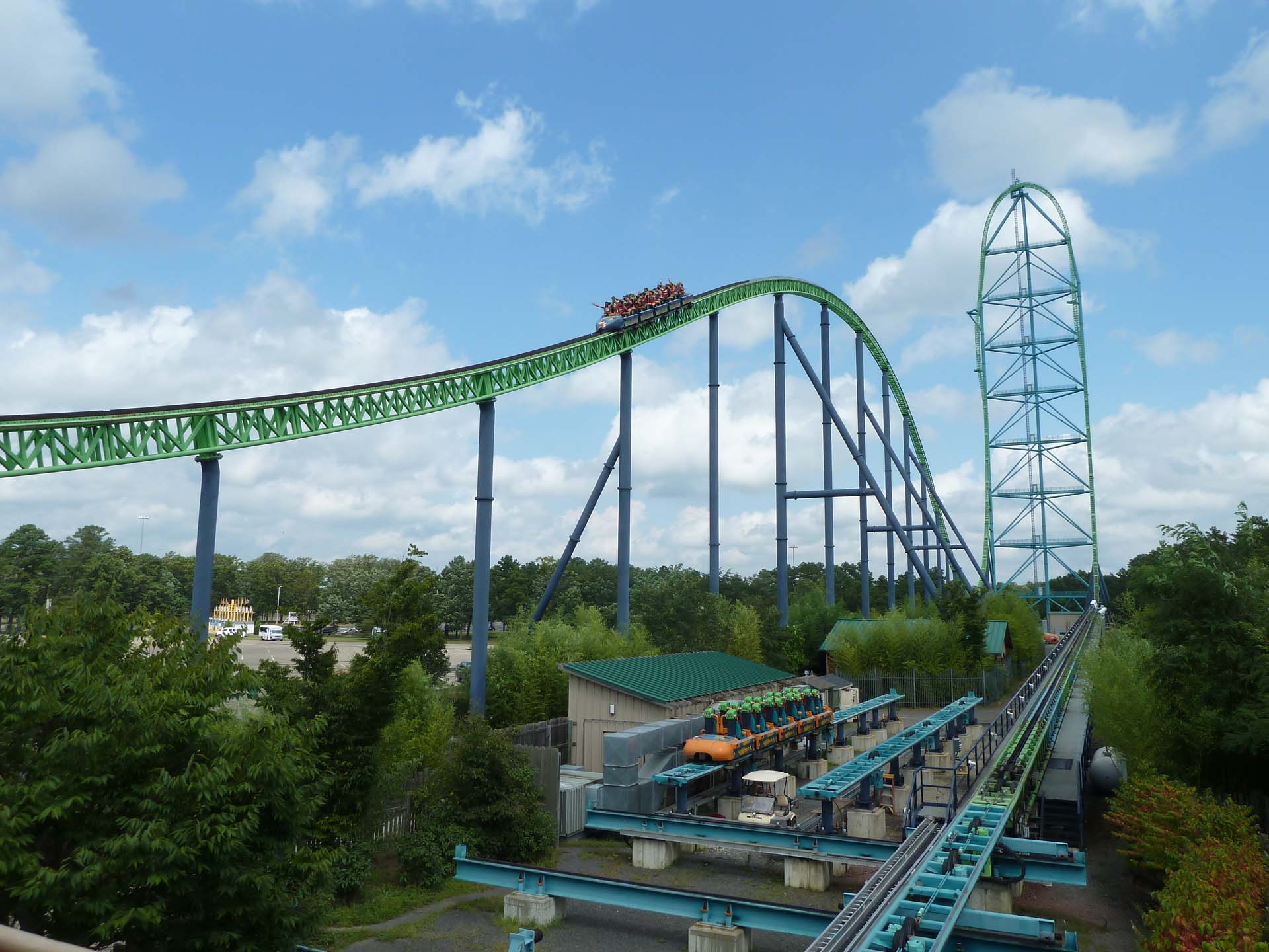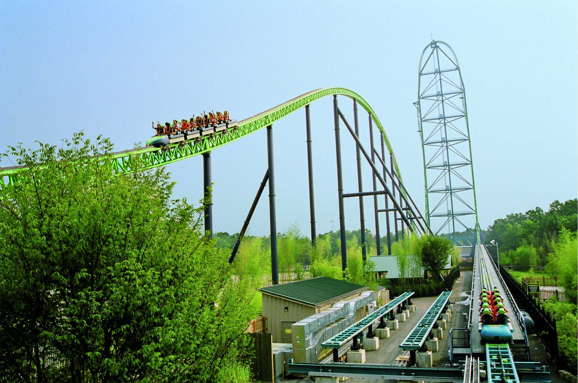 Green Lantern is a five-inversion standup roller coaster from Bolliger & Mabillard that broke records on its initial installation. The coaster made its Great Adventure debut in 2011, after a relocation from Kentucky Kingdom, where it had operated since 1997.