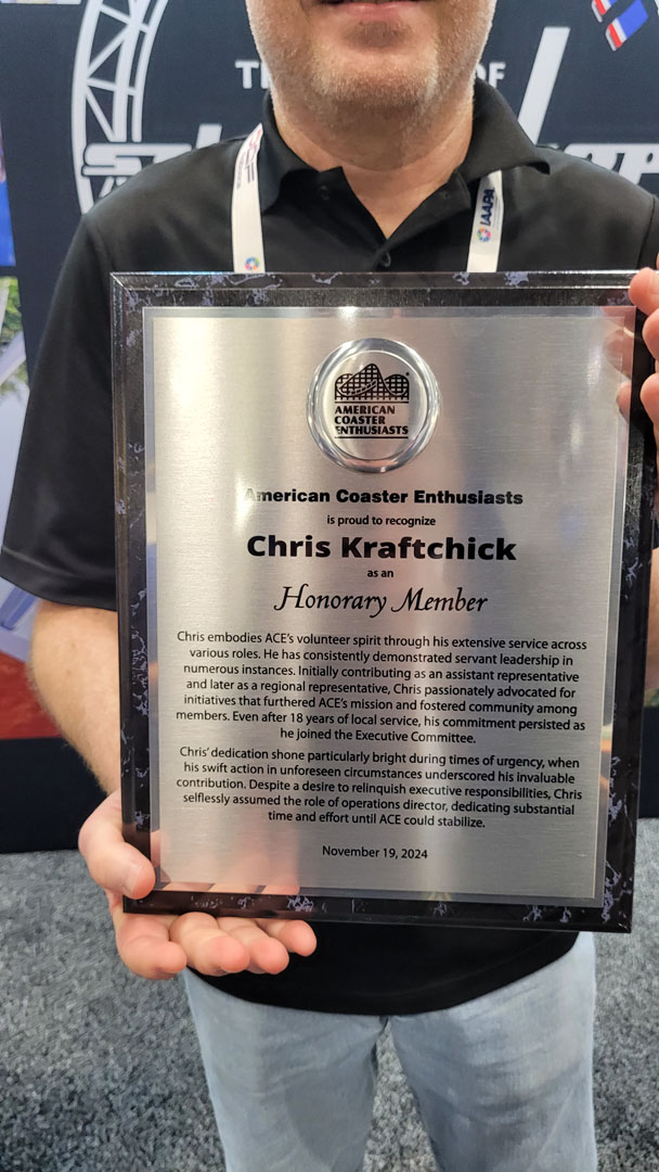 During IAAPA Expo in November, Chris Kraftchick was surprised with this honor for his unwavering commitment in a time of peril for ACE. Chris’ devotion will be forever noted in ACE’s history, joining an elite group of 96 individuals and organizations previously granted this honor. As an honorary member, he was presented with a plaque and one year of complimentary event fees for national events.