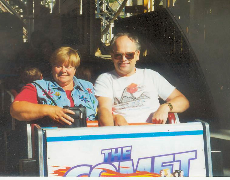 Coaster Con VII in 1984 in Canada was Louise’s first Coaster Con. After the New England Coaster Con in 1985, Louise traveled to Blackpool in England and to Southport Pleasureland, where we met riding Cyclone. We exchanged letters for a year, and then I visited her, after which we made trips to La Ronde and Crystal Beach in Canada.