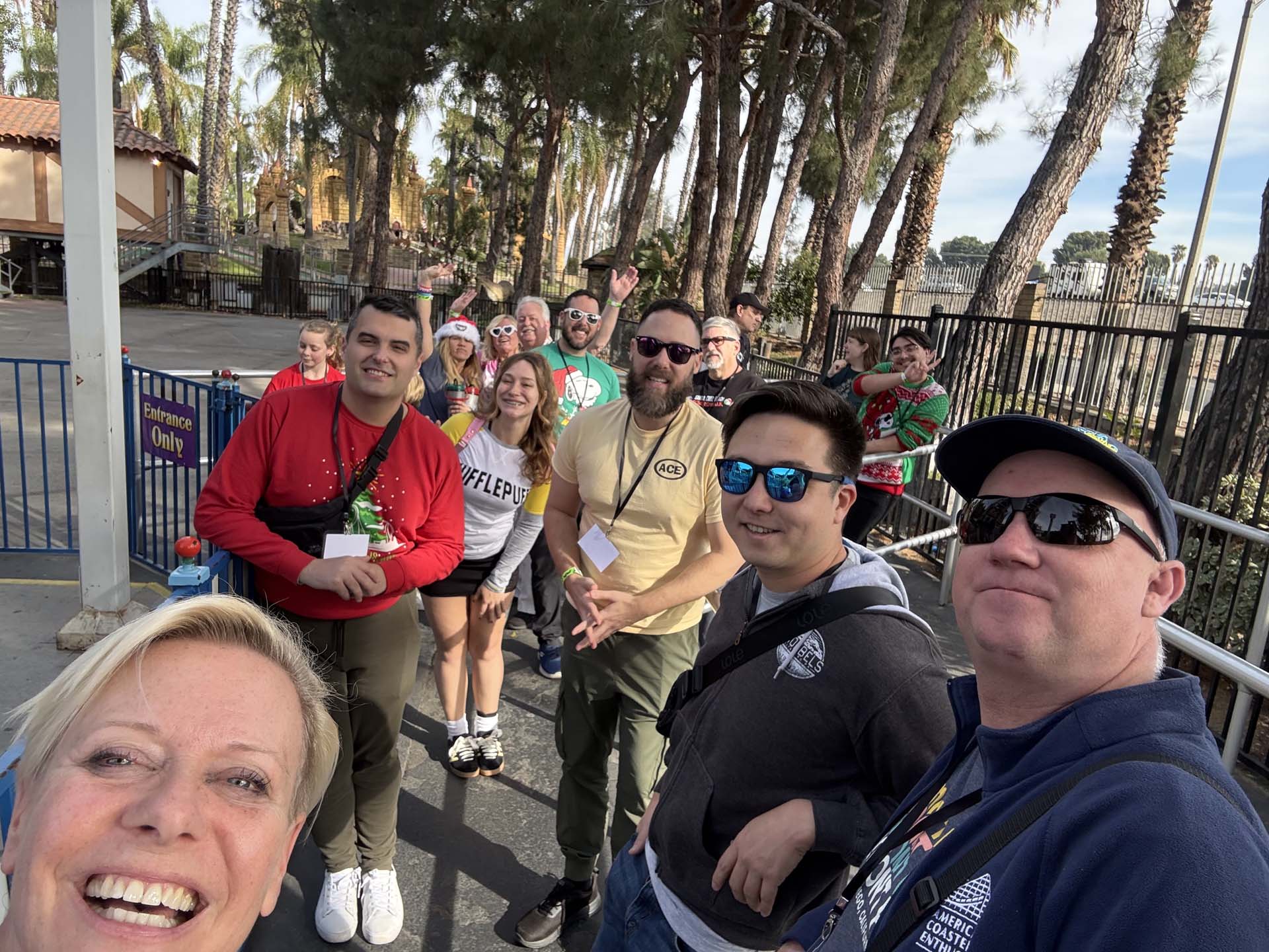 On December 8, 27 people attended ACE Pacific Southwest’s ACE Holiday at Castle Park event in Riverside, California. The location of the park is wonderful, as it’s an easy drive from Southern California and Arizona, where all attendees live. Castle Park has a rich history in Southern California. It was designed, built and operated by Bud Hurlbut, who designed rides for Knott’s Berry Farm. The park has been operating since 1976 and is now owned by Palace Entertainment.