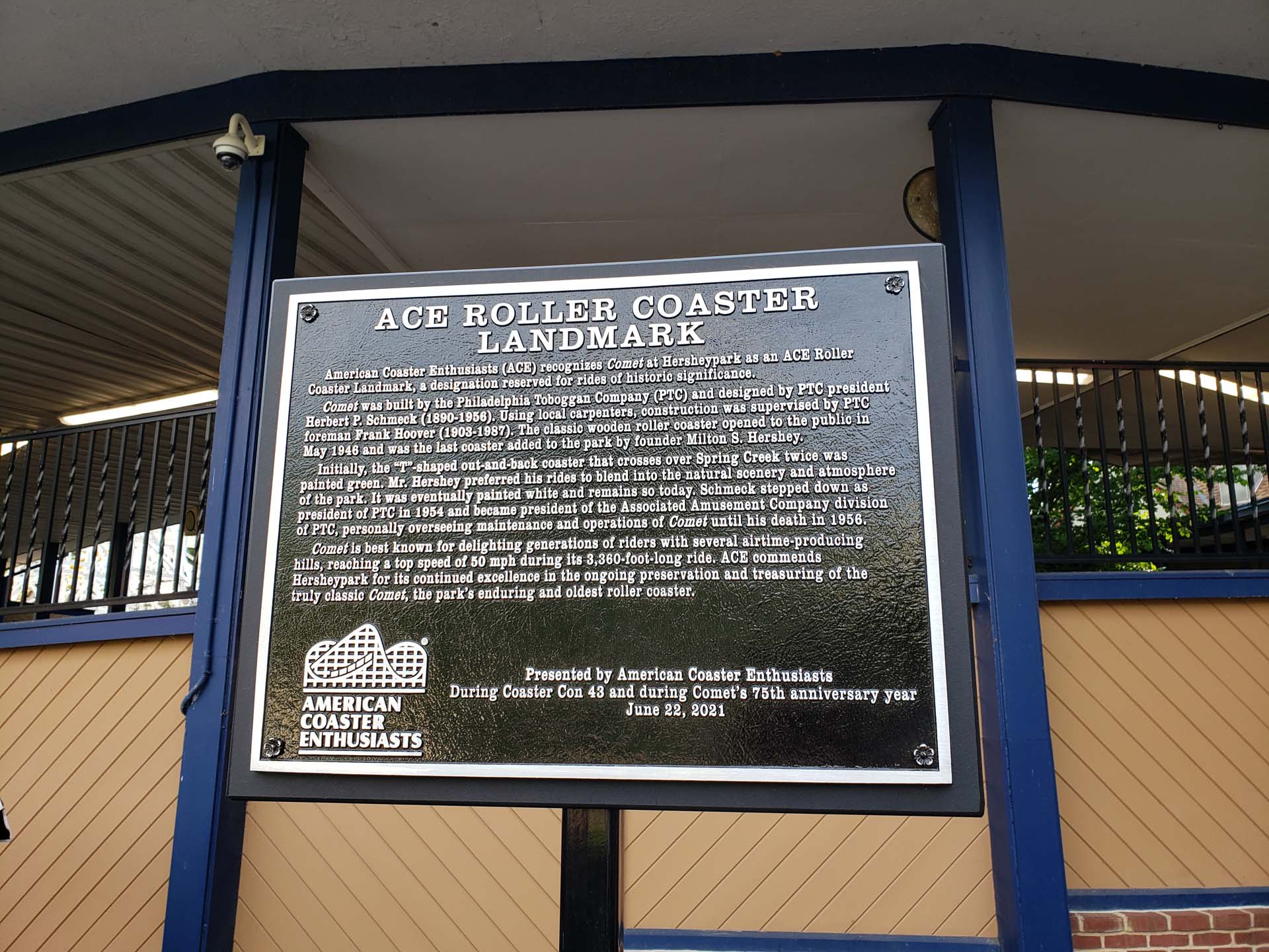 While spending time in amusement parks, it’s likely one will encounter an ACE Roller Coaster Landmark plaque, such as this one for Comet at Hersheypark in Hershey, Pennsylvania.