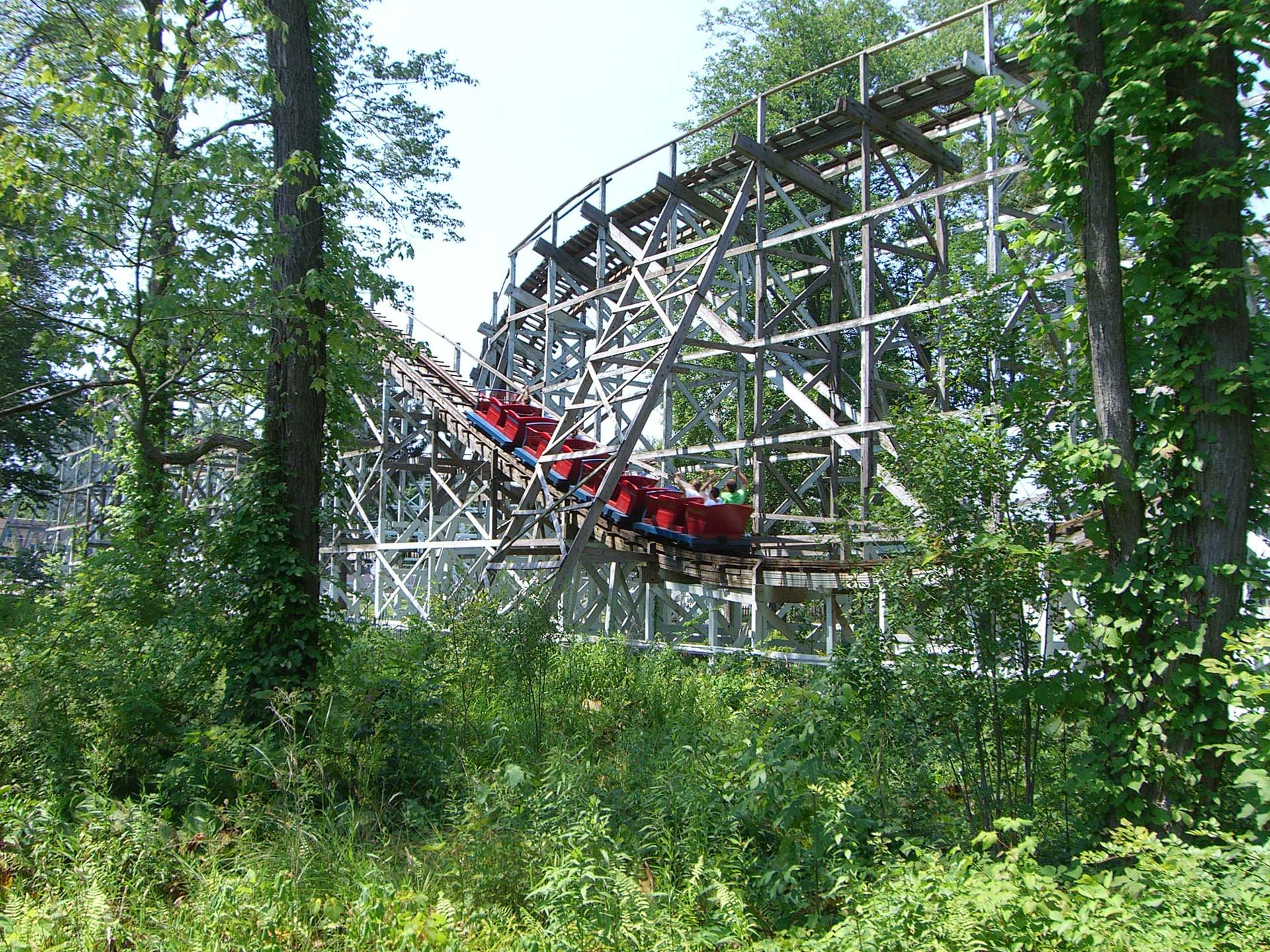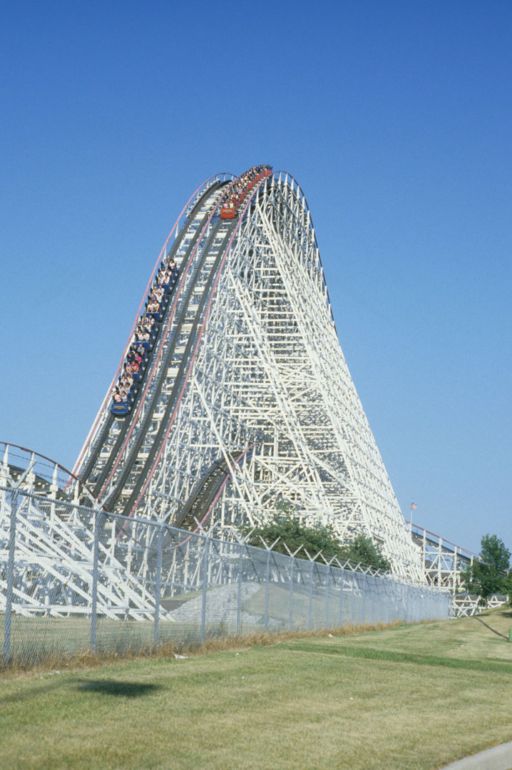 When not at Conneaut, Adams worked on a variety of rides all over the country. He consulted on Flying Turns at Knoebels as well as Thunder Road and Hurler at Carowinds. Other projects included Texas Giant at Six Flags Over Texas, rides at Geauga Lake and Shivering Timbers at Michigan’s Adventure.