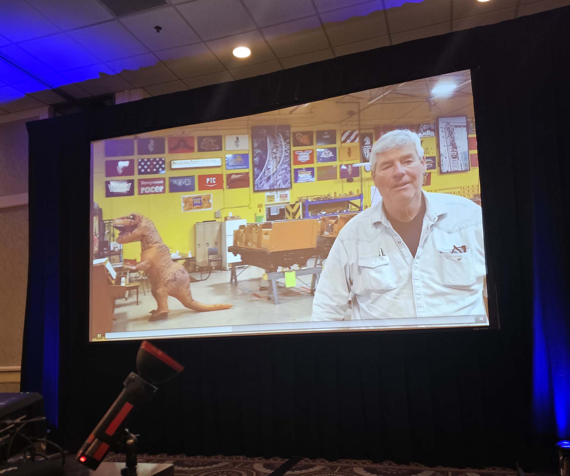 As always, PTCI closed out the Eastcoaster presentations, and its president and CEO, Tom Rebbie, and operations manager, Janine Rebbie Matscherz, were full of news. PTCI has a new logo for 2025, and Rebbie reviewed the evolution of the company logo from the Philadelphia Toboggan Company era up to now. The shop was very busy with projects in 2024 and is even busier already in 2025. Currently being worked on for this off season are trains from Thunderhawk (Dorney Park), Rampage (Alabama Adventure and Splash Adventure), Roar and Wild One (Six Flags America), Boardwalk Bullet (Kemah Boardwalk), Great American Scream Machine (Six Flags Over Georgia), Blue Streak (Cedar Point), Zippin Pippin (Bay Beach Amusement Park), Comet (Great Escape), Boulder Dash (Lake Compounce) and Wild Cat (Frontier City). Present in the video of the shop (but not at Eastcoaster) was the familiar T-Rex that attendees may remember from the shop open house during Coaster Con 43.