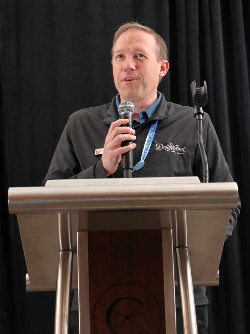 As the other park presenters had done, Dollywood’s public relations director, Wes Ramey, first reviewed the park’s events, shows and awards won in 2024 — and the list was long! For Golden Tickets alone, Dollywood won Best Guest Experience, Best Kids Area, Best Family Coaster (Big Bear Mountain), Most Beautiful Park and Best New Show (“From the Heart”). The park was chosen #1 U.S. Theme Park by Trip Advisor. Ramey brought a one-day complimentary park ticket for all attendees.
