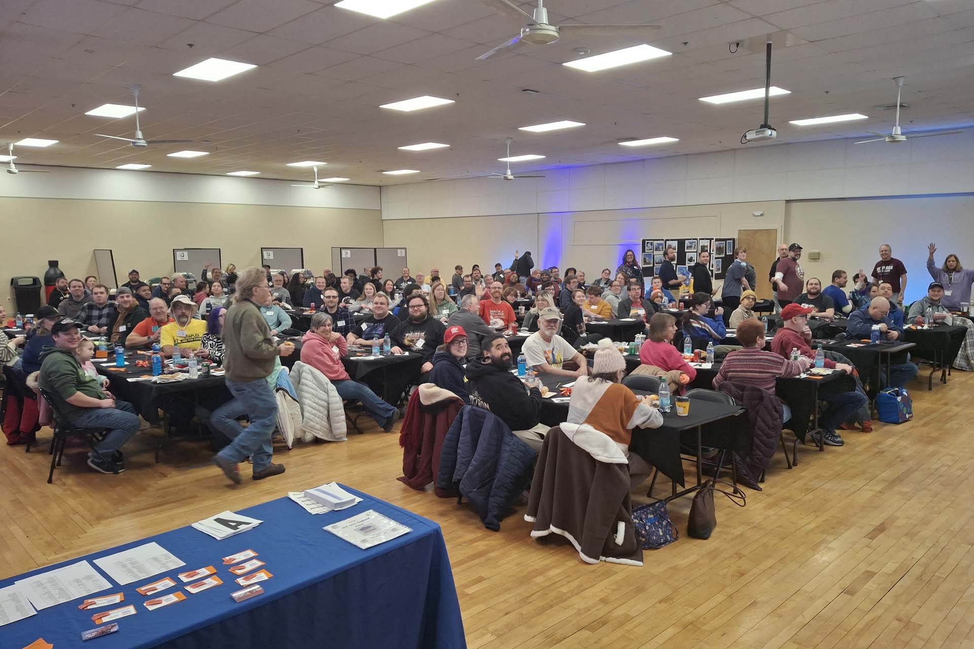 The schedule began with Mike Thompson leading the event's signature warm-up trivia game. This year, it featured three rounds, with the winner of each round getting first choice at the door prize table.