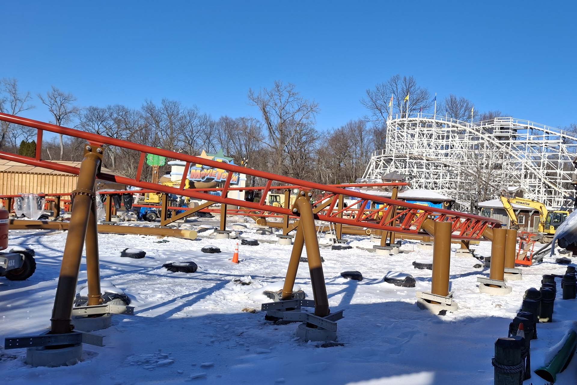 This winter, the park is refreshing the little houses and other structures of Storytown USA with new roofs, fresh paint and updated signage. Flashback, its Vekoma Rides boomerang, was repainted blue and white, and a brand-new next-generation train had just arrived at the park from the Netherlands.