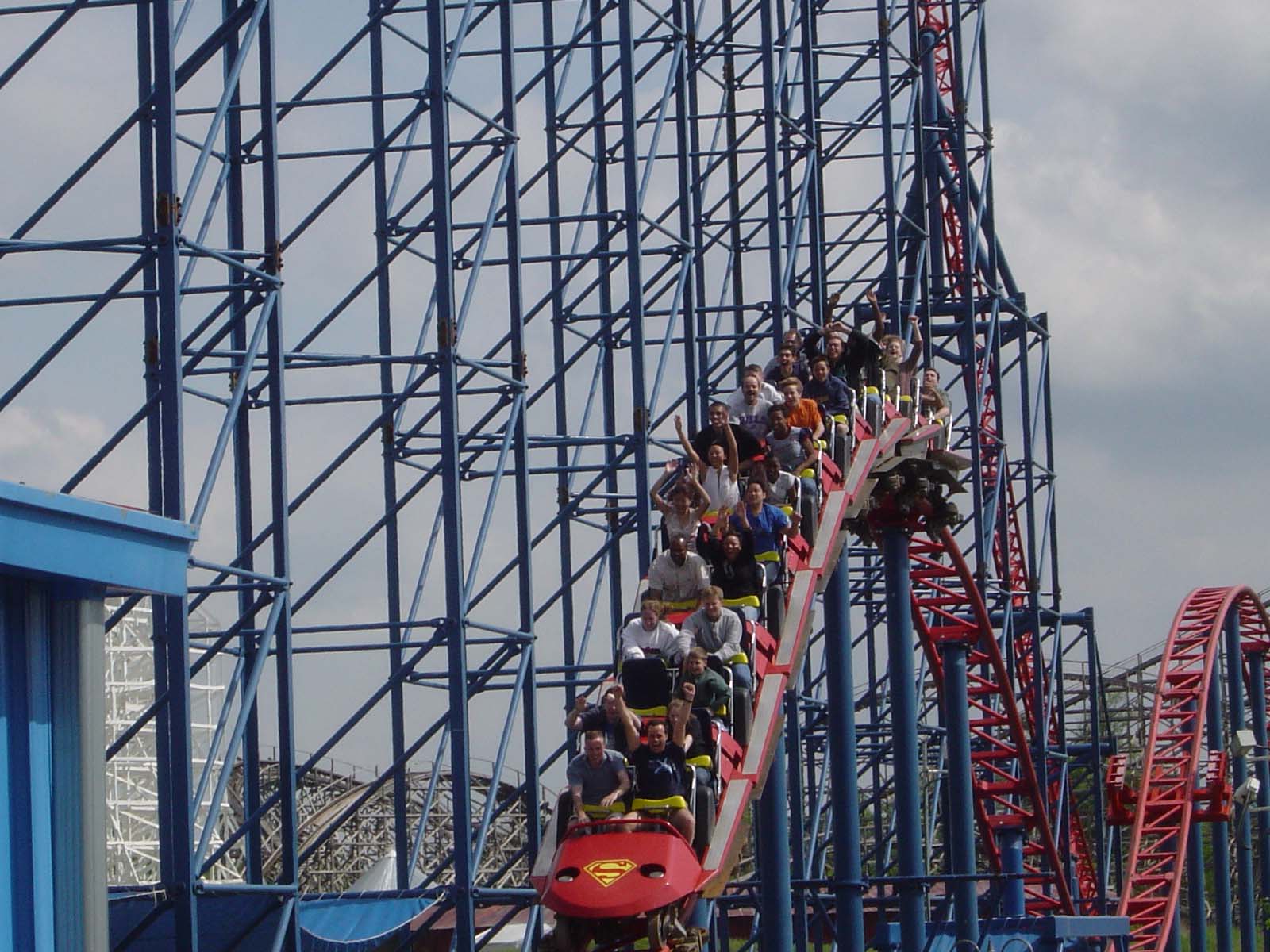 Six Flags America’s flagship roller coaster is Superman: Ride of Steel — a mirror image clone of 1999’s Ride of Steel at Six Flags Darien Lake.