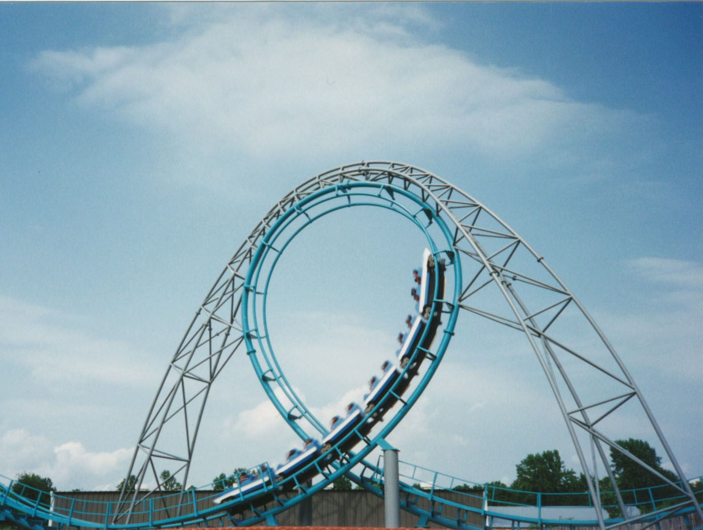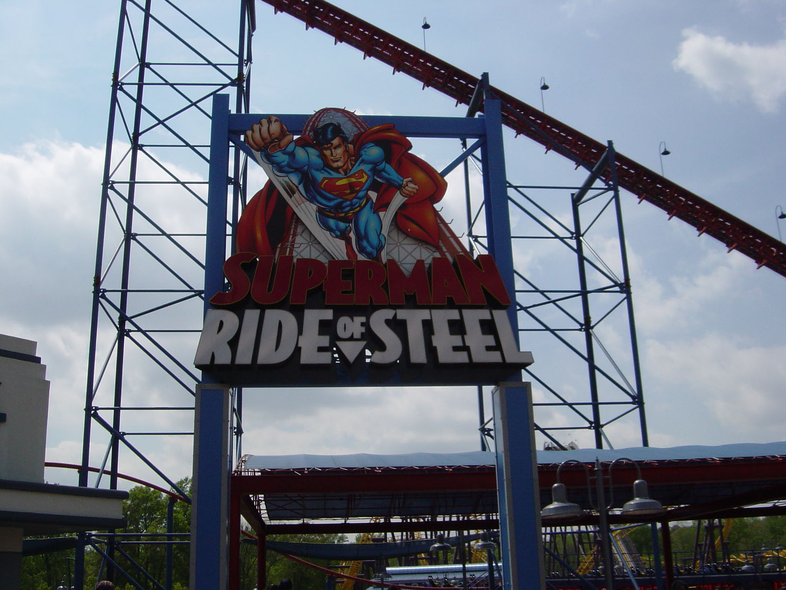 One of the most notable scream machines at the park is Superman: Ride of Steel, which is a mirror image clone of Ride of Steel at Six Flags Darien Lake (Darien Center, New York). The coaster is often talked about online for both its excellent forces and the sections of straight track that may seem odd to a casual observer until you realize that the Darien Lake version has those straight tracks over bodies of water (to simulate Superman flying at high speed over water).