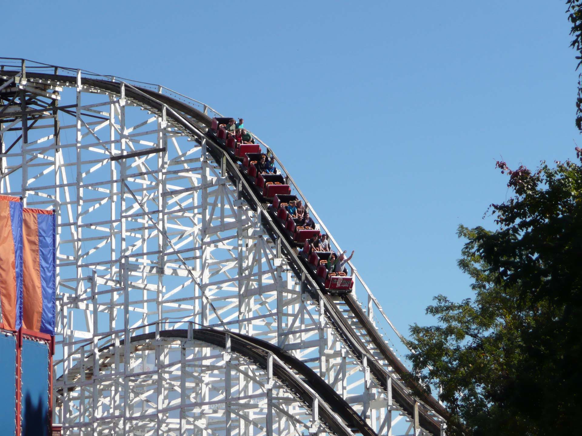 Among the notable rides include The Wild One, a Dinn Corporation wooden coaster that is not only the oldest ride in the park, but also the oldest ride in the entire Six Flags chain (1917). This ride has already been relocated once from its original home (at defunct Paragon Park in Massachusetts, where it was named Giant Coaster), so perhaps it will be fortunate enough to find another home. In 2017, The Wild One celebrated its 100th birthday, and ACE has already received emails from dedicated fans (including at least one couple who got married on the coaster) to try and set in motion a plan to save The Wild One for future generations.