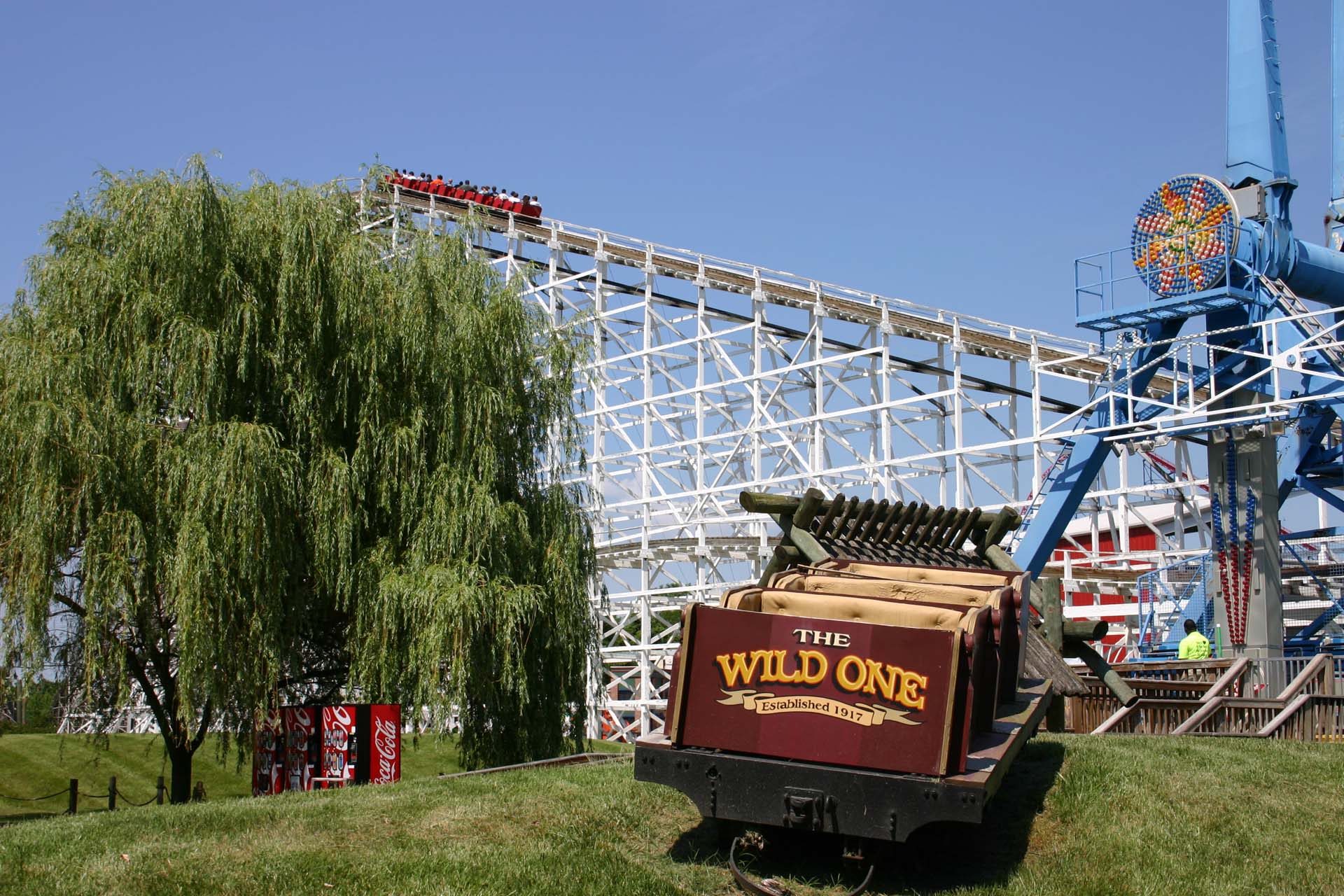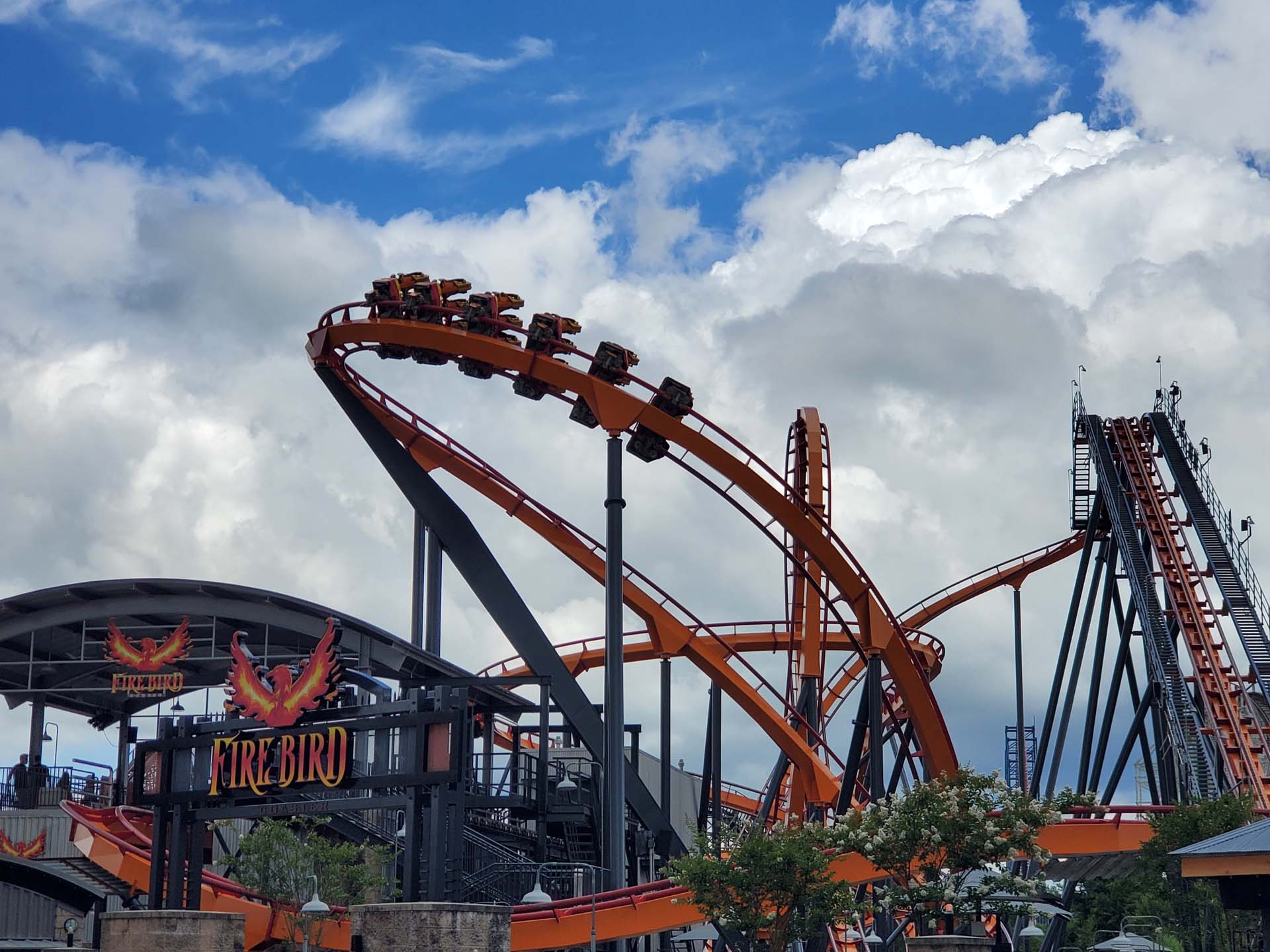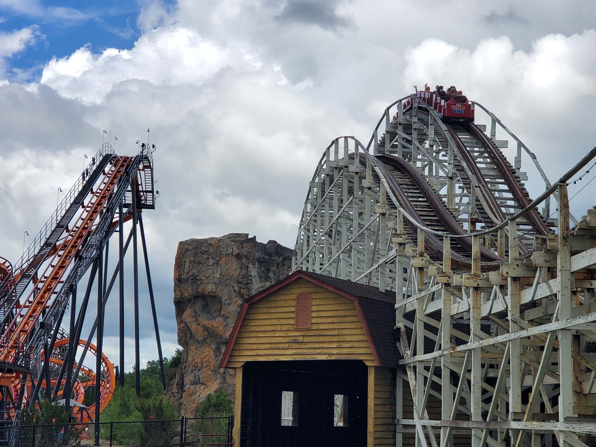 One of the park’s newest roller coasters — Firebird — operates steps away from its oldest, The Wild One.