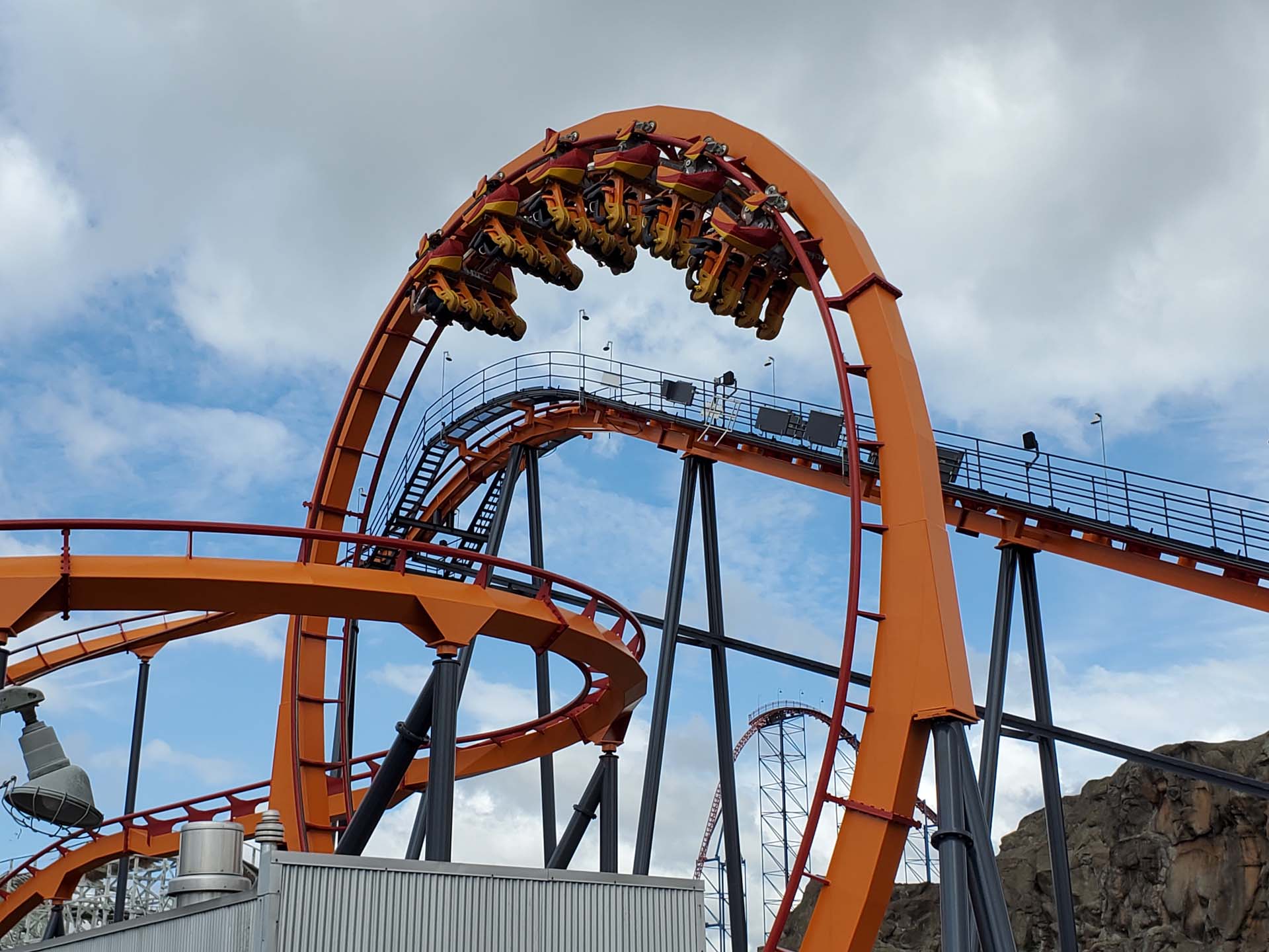 Also at the park is a coaster that really should have its own star on the Hollywood Walk of Fame. The ride is the floorless coaster, Firebird, that originally started its life at Gurnee, Illinois’ Six Flags Great America as Iron Wolf. It was the original coaster by legendary Swiss manufacturer Bolliger & Mabillard, not counting some work they did on a few Intamin coasters before going off on their own. Iron Wolf was famously featured in Macaulay Culkin’s 1990’s film “Richie Rich,” in which his parents bought it for him as a gift to ride in his backyard. During its tenure at Six Flags America, Iron Wolf still retained its stand-up trains and operated as Apocalypse: The Last Stand until 2018, when it was converted into the floorless Firebird and got a new paint job.