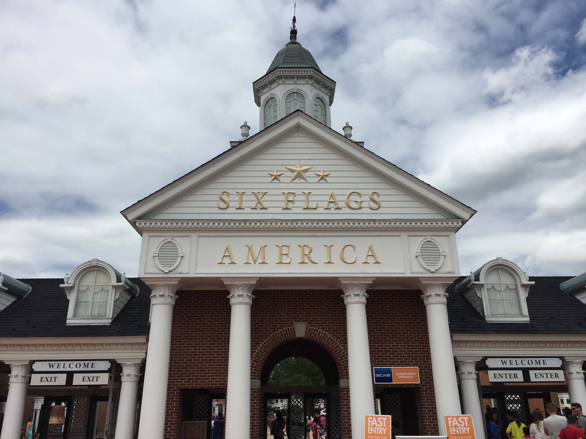 SFA entrance. Following numerous name changes and expansions, the park was rebranded Six Flags America for the 1999 season.
