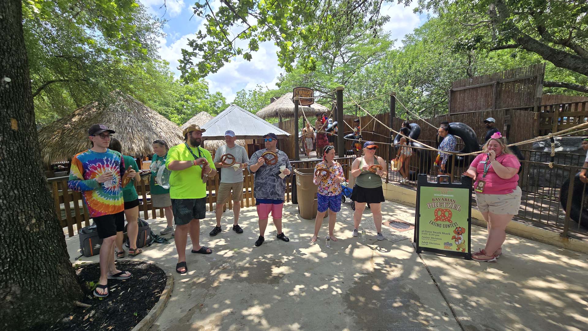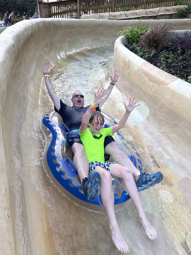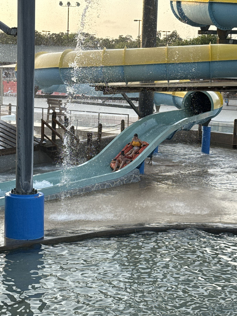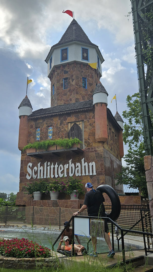 Sunday was full. Starting with a hot breakfast (various types of breakfast burritos along with fruit and pastries) on the park’s new rooftop Biergarten, eager attendees moved on to the morning ERT. Attractions feeding into the Lagoon were open. New for the event was the updated incarnation of Hillside Tube Chute, which opened midsummer in 2024. It still starts off gently, but ACEers were wowed by how wild the second half of the ride has become. It’s just one of those attractions that makes Schlitterbahn one of a kind. Another thing that was different is that alongside the Lagoon was a musician, a young fiddle player! How nice.
