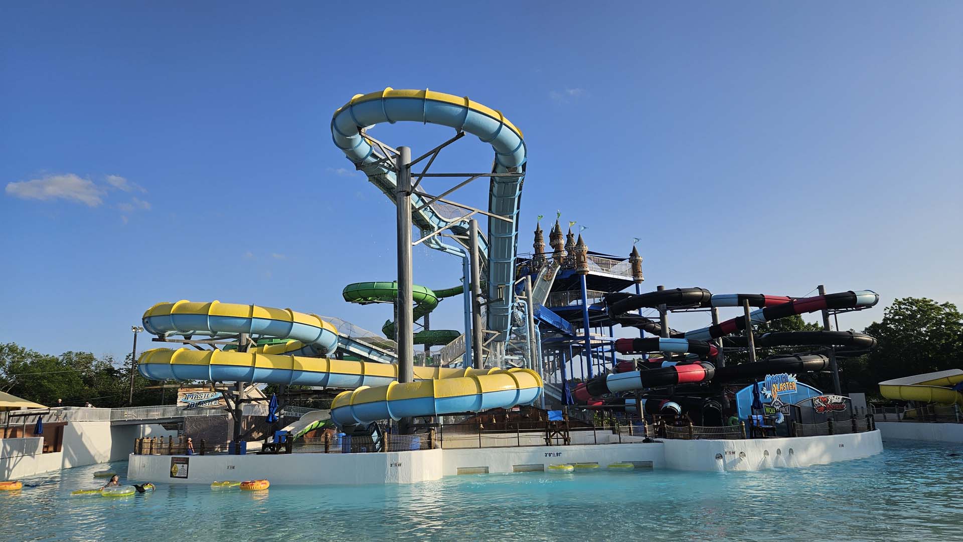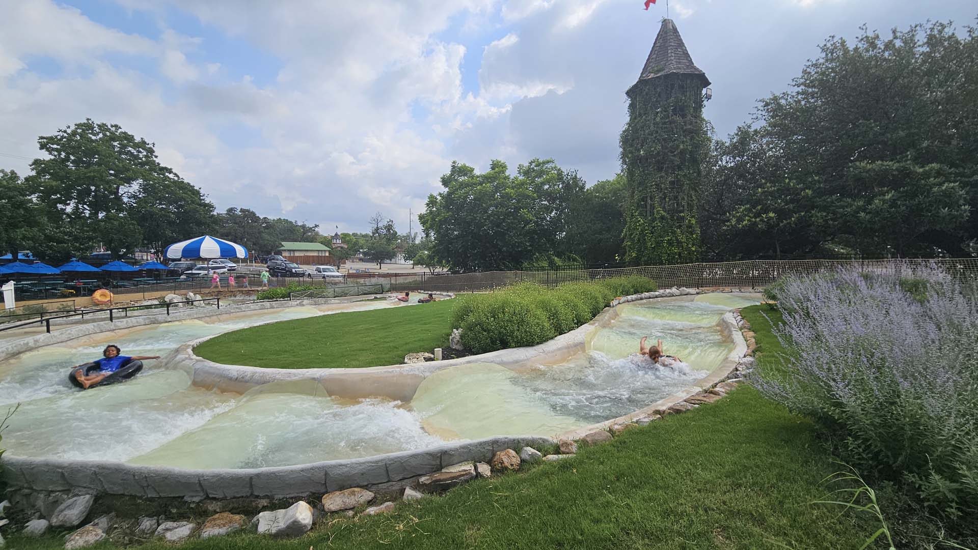 Just before the park opened, Schlitterbahn allowed attendees early entry to Raging River, the park’s longest tube chute. The attraction travels from one side of Schlitterbahn West to the other, often taking 20 minutes or more. It still uses the fresh spring water — chilly! — from the Comal River.