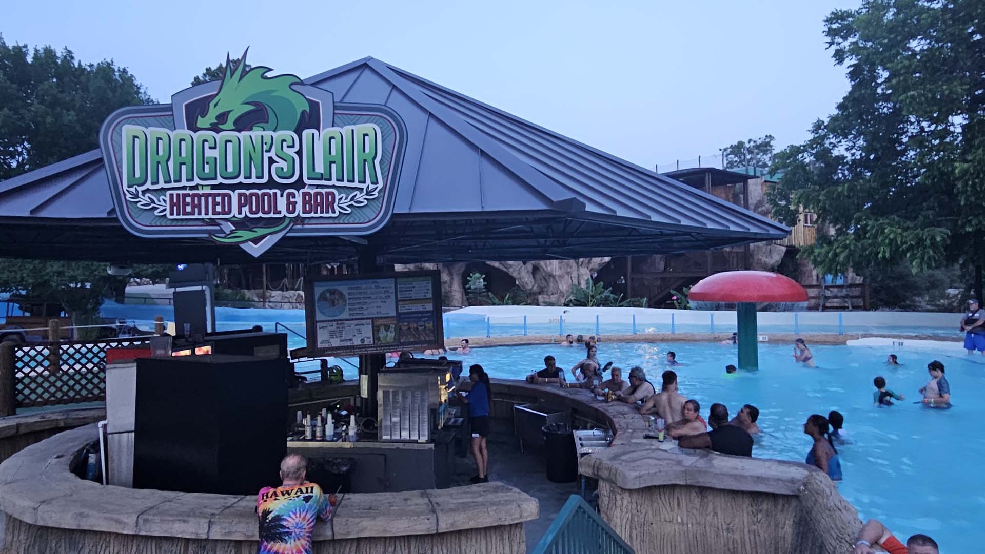 The evening ended well with everyone enjoying a Dippin’ Dots sundae bar and … well, a bar. The Dragon’s Lair heated pool served up beverages of choice.