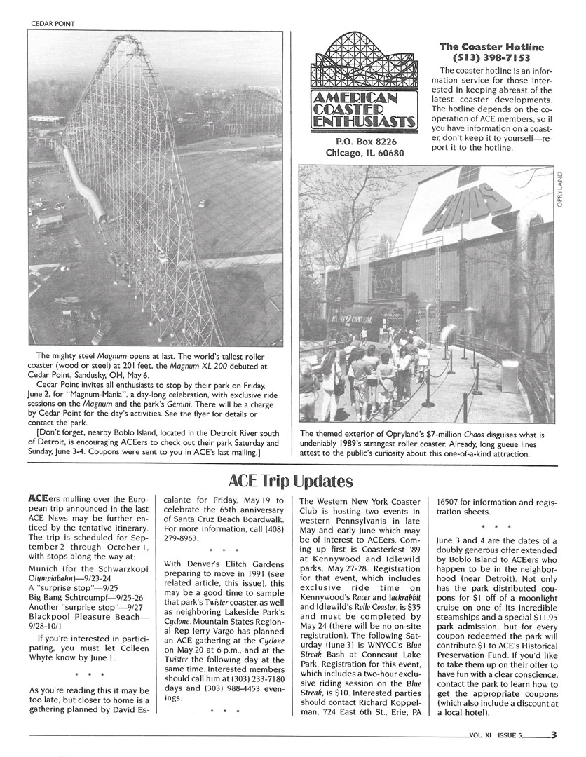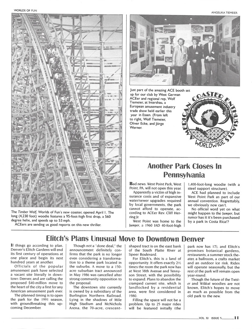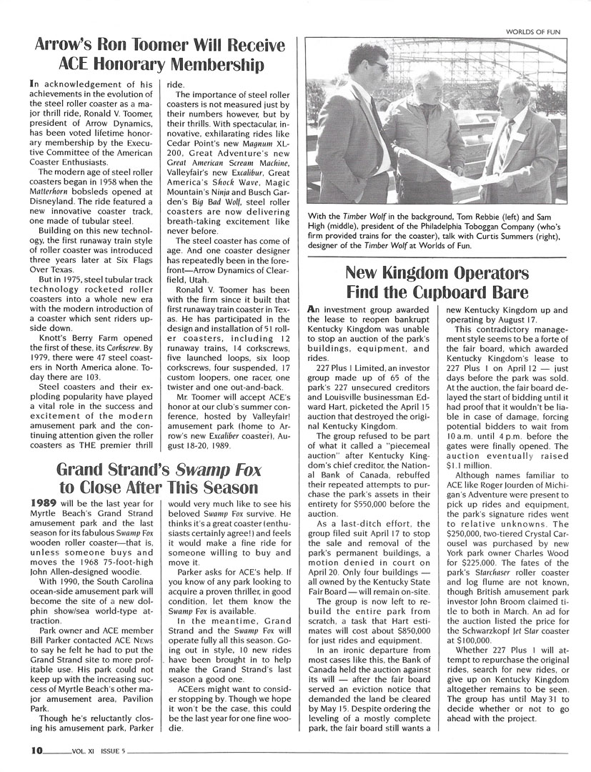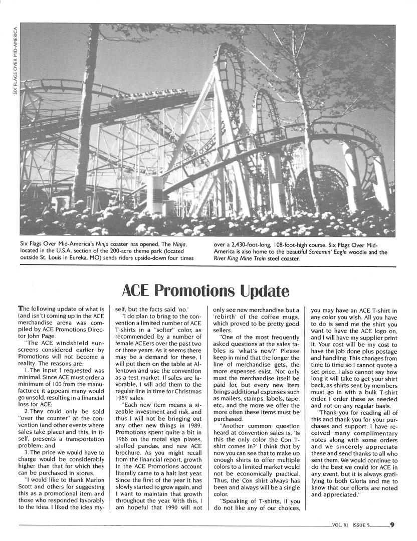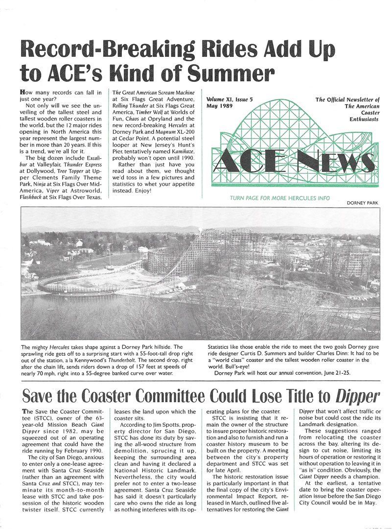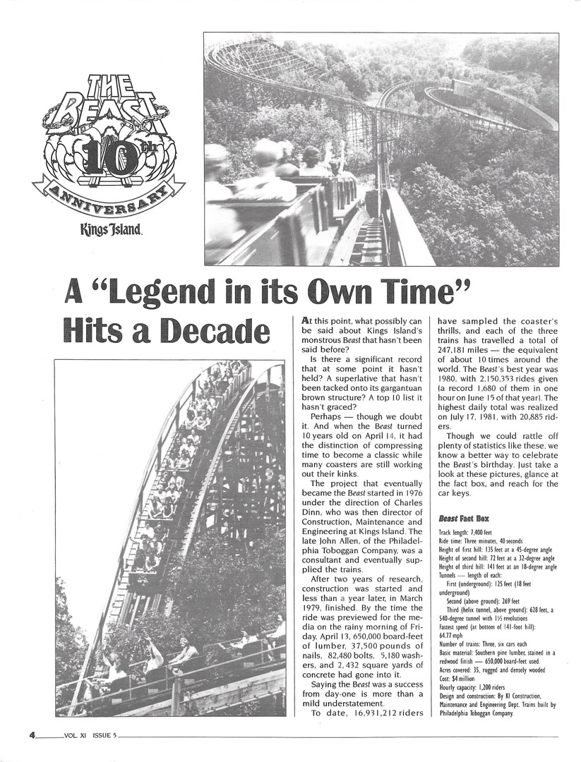 Want to feel old? The Beast at Kings Island (Mason, Ohio) celebrated its 10th anniversary with an article in the May 1989 issue of ACE News.