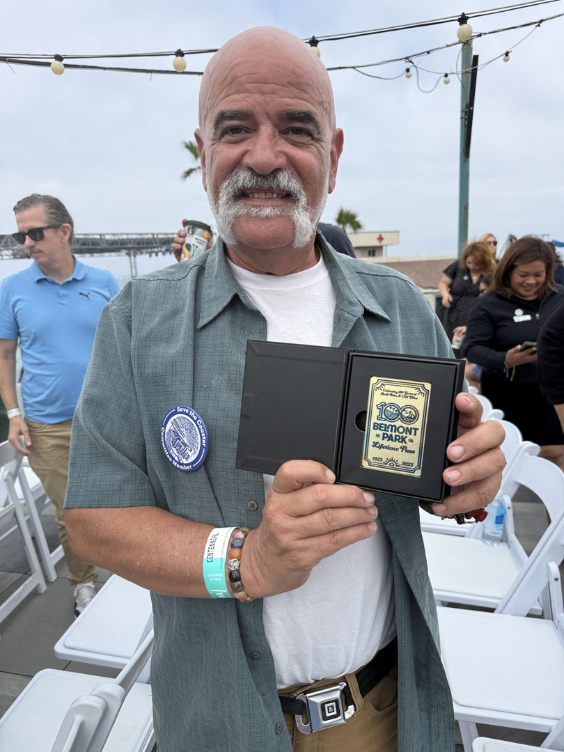 Thomas gave a huge shoutout to the Save the Coaster Committee and the many committee members who were in attendance. One member in attendance was ACE honorary member Tim Cole, who helped found this group in the 1970s after Belmont Park closed and the city wanted to use the land for other purposes. The group continued to maintain pressure on the city, and Giant Dipper was reopened in 1990 after a $2 million investment to restore the coaster (it had been closed for 5,000 days). Cole was one of the first test riders after this refurbishment.