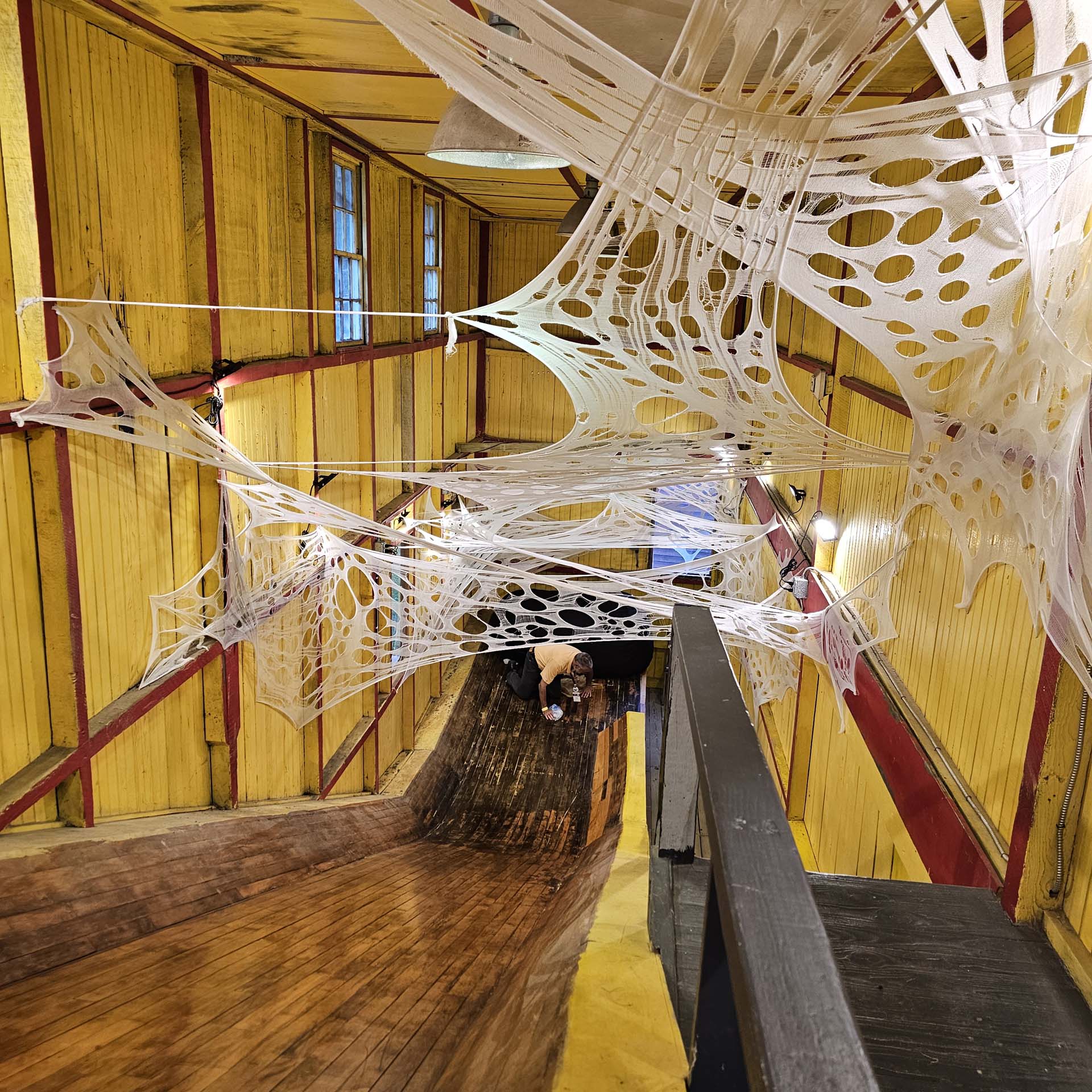 A history tour led by Sue Klein — one of the park’s owners — included a look at Hilarity Hall.