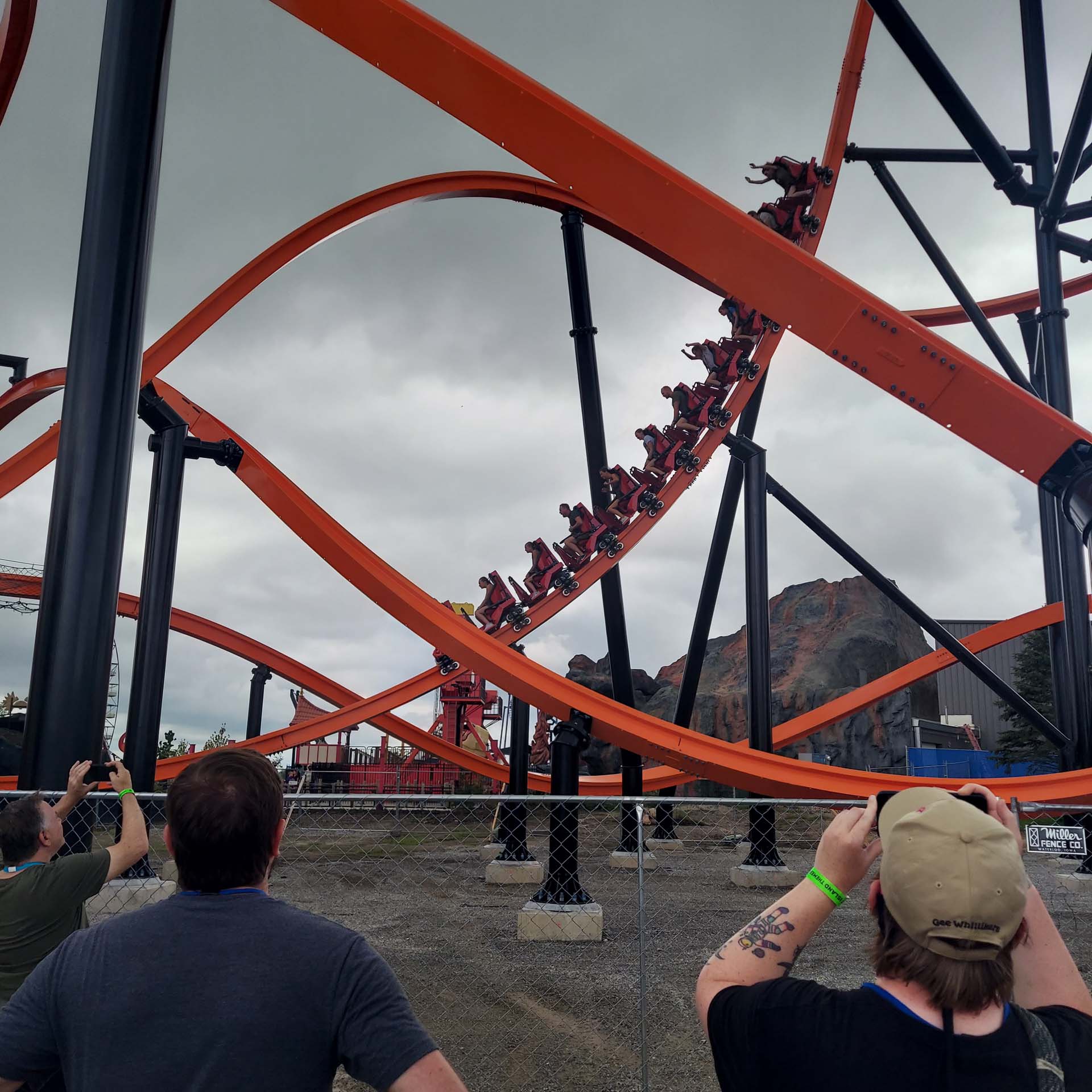 After ERT a group photo was taken outside of the entrance, followed by a behind-the-scenes tour of Fire Runner. Everyone in attendance got escorted behind the park’s addition to photograph unique angles of the coaster. The group also was able to enter the maintenance shed, where the park kindly asked for no photos. While coming out, some ACEers got an up-close demonstration of why riders are asked to secure all loose items, as a stray phone came flying off the coaster. Everyone was okay, but that is the kind of story that makes behind-the-scenes tours memorable for the wrong reasons.