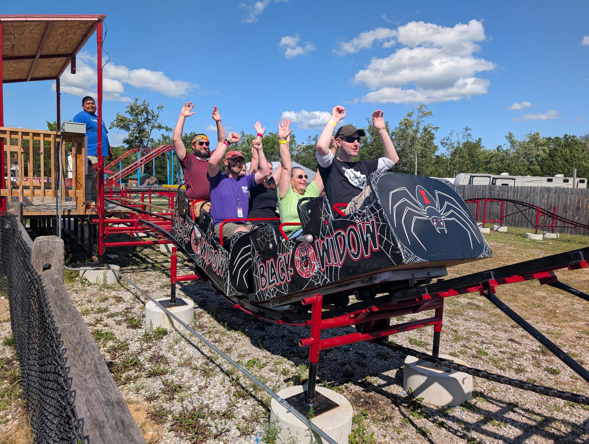 Among the collection are two Allan Herschell Little Dipper coasters. The one named Little Dipper originally opened in 1950 at Long Point Park in Geneseo, New York, and was purchased and installed in 2017. The second, Black Widow, is from Funland Amusement Park in Houghton Lake, Michigan, and is believed to have opened in 1946, making it Michigan’s oldest operating roller coaster. The park formerly operated an S.D.C. Galaxy that could not handle the harsh northern Michigan winters and has been sold to a park in Mexico.