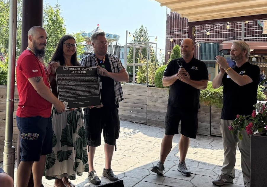 The brakemasters celebrate ACE's recognition of their beloved coaster.