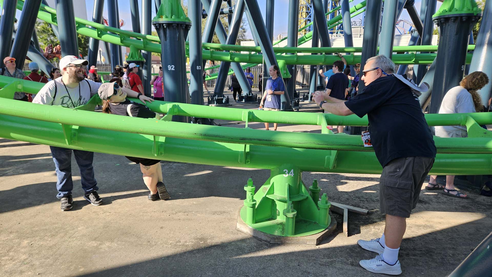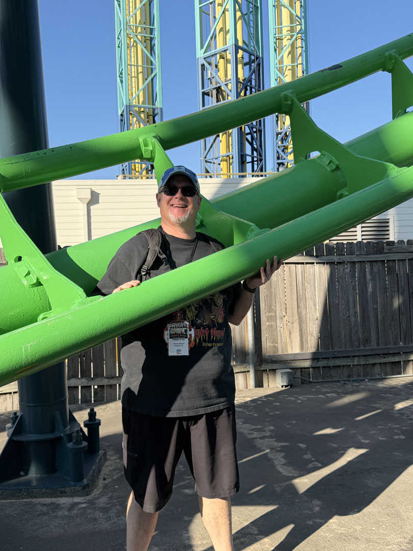 Following the morning check-in, the group headed into the park for the first perk. Who doesn’t love an up-close and personal interaction with a coaster’s supports and track? ACEers were clamoring to find the best angles and create the funniest poses under the spaghetti bowl of Poltergeist, the Premier Rides launched coaster.