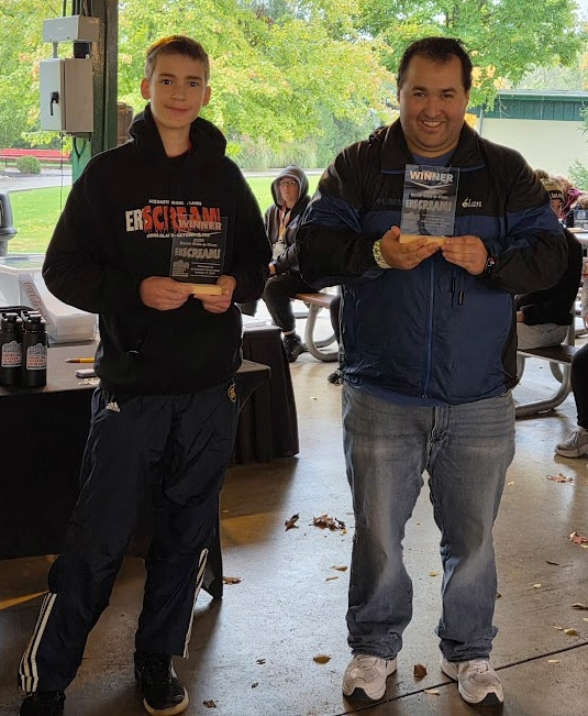 Finally, the winners of the Racer Ride-a-Thon were announced, with a five-way tie for first place at 11 rides each. After a difficult trivia question tie-breaker, Daniel Glauser and Jude Konecki were named the winners, and both received awards.