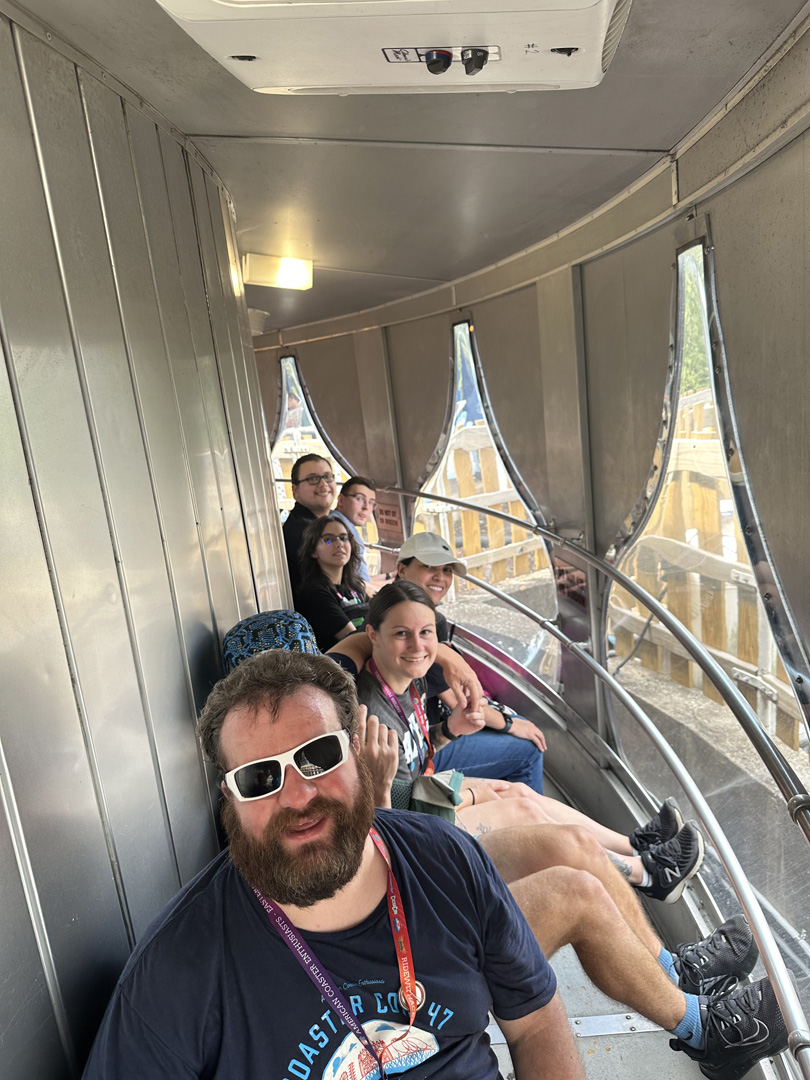 In addition to the tour, there were various informal takeover times (ITOTs) scheduled throughout the day, which included the Arrow mine train Trailblazer, Kissing Tower and Frontier Flyers. Guests could also enjoy the park’s other rides, including five that celebrated milestone anniversaries in 2025. Kissing Tower and Twin Turnpike both turned 50, and the dueling Great Coasters International, Inc. wooden coaster Lightning Racer turned 25.