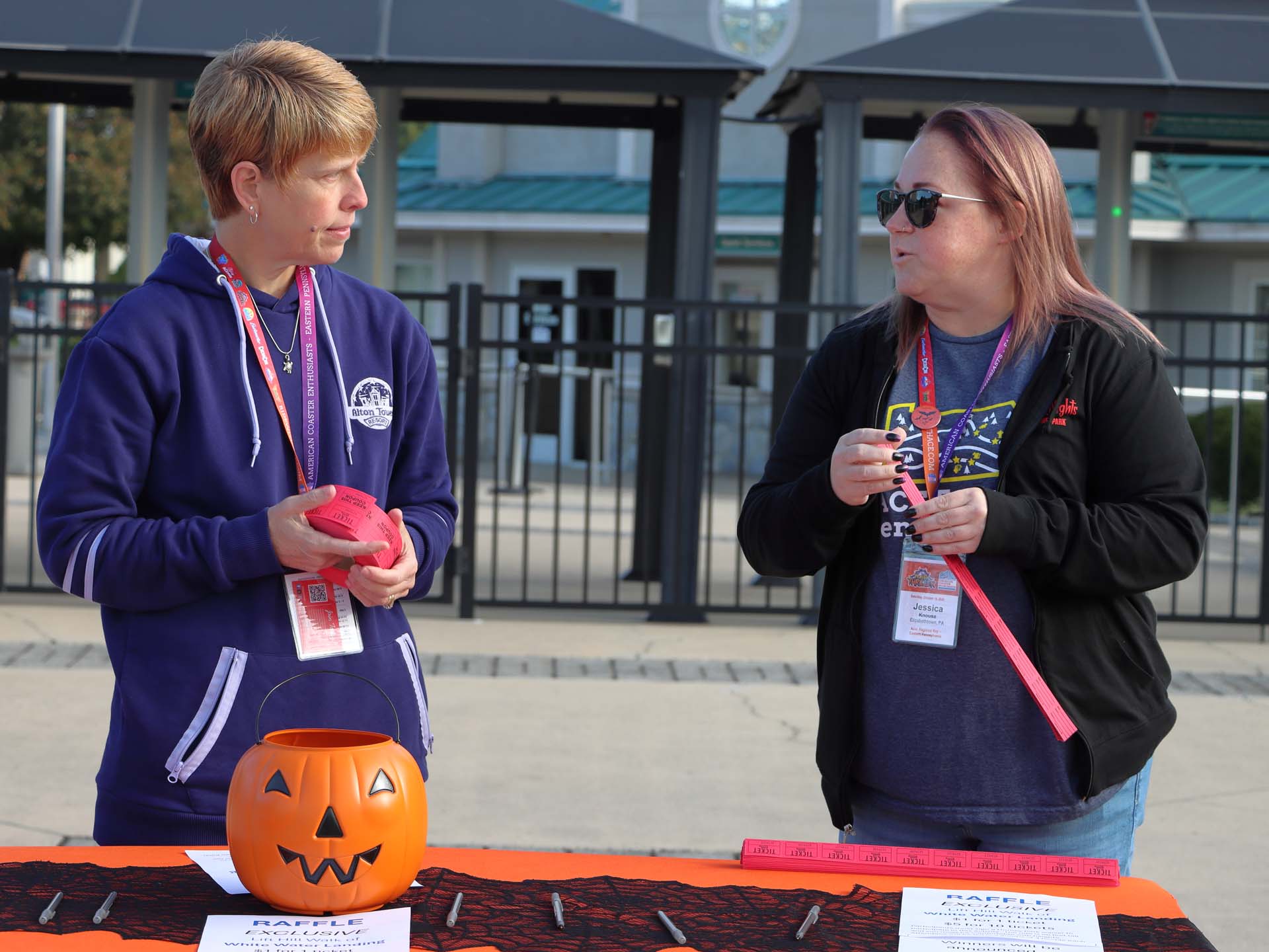 The morning started with check-in, where guests got their name badges, lanyards and pins. They also had an opportunity to purchase raffle tickets for the chance to walk the lift hill of White Water Landing, the park’s shoot-the-chutes ride. Morning ERT was on Iron Menace, MT Buckets and Revolution.