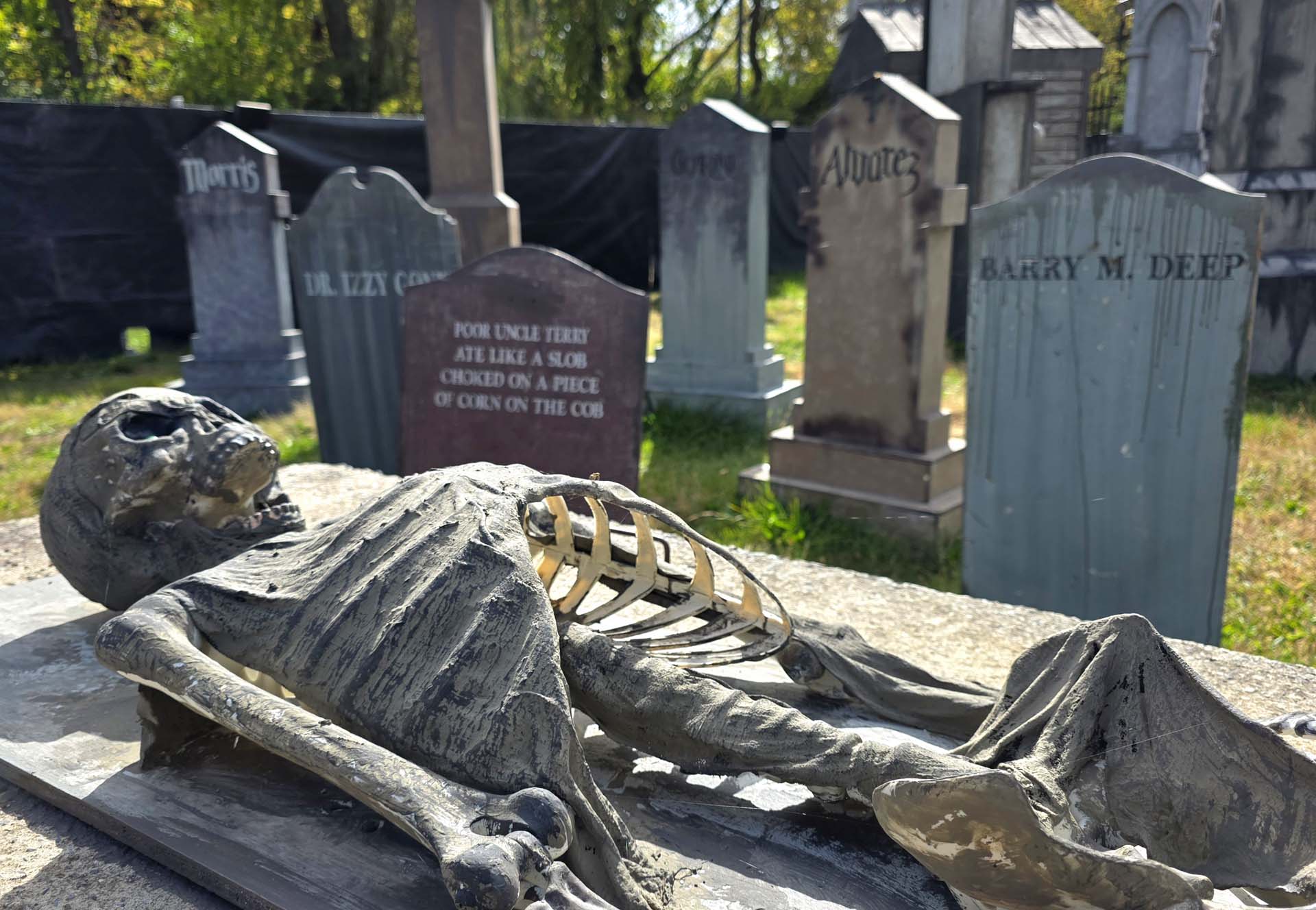After informal takeover times on Steel Force and the Whip, attendees were able to participate in an exclusive behind-the-scenes tour of one of the park’s haunts: Necropolis. While walking through the maze in daylight, attendees could take photos and read the tombstones throughout the “cemetery.” Besides the tombstones with names, puns and poems, some paid tribute to several of the park’s former rides such as Water Scooters and Paratrooper.
