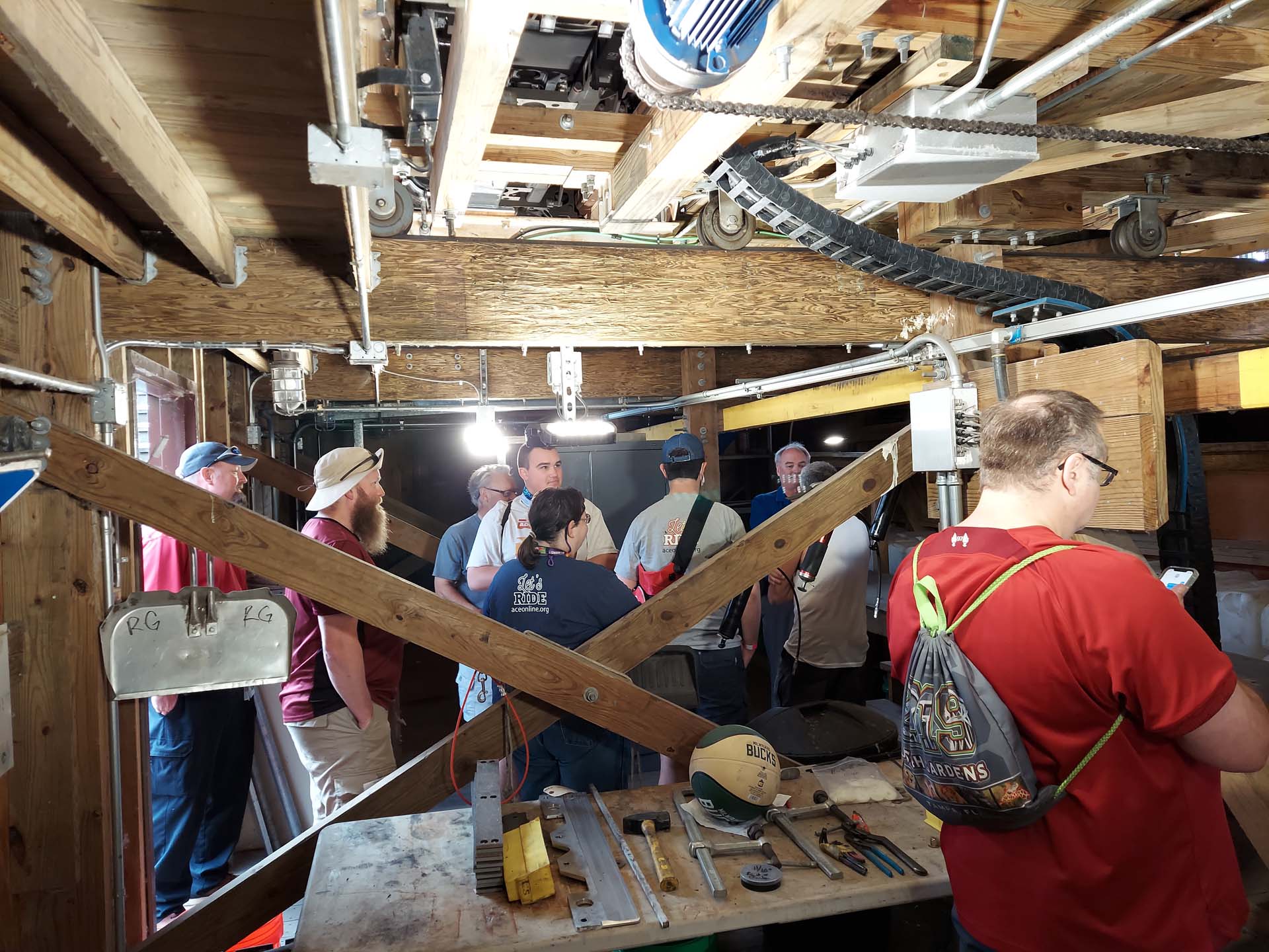 and into the shed that houses the lift hill motor. The 29 attendees got some