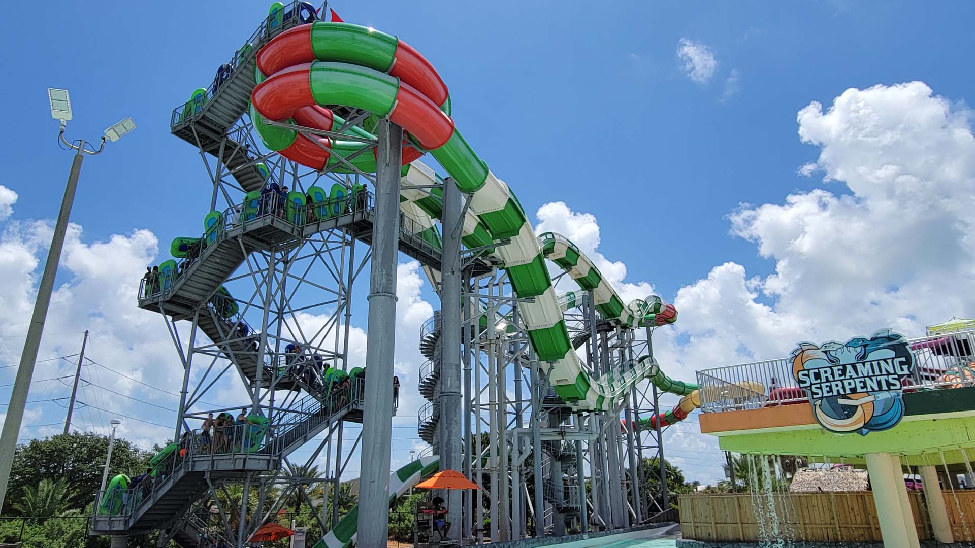 Serpents body slides and the park’s most recent addition, Infinity Racers mat