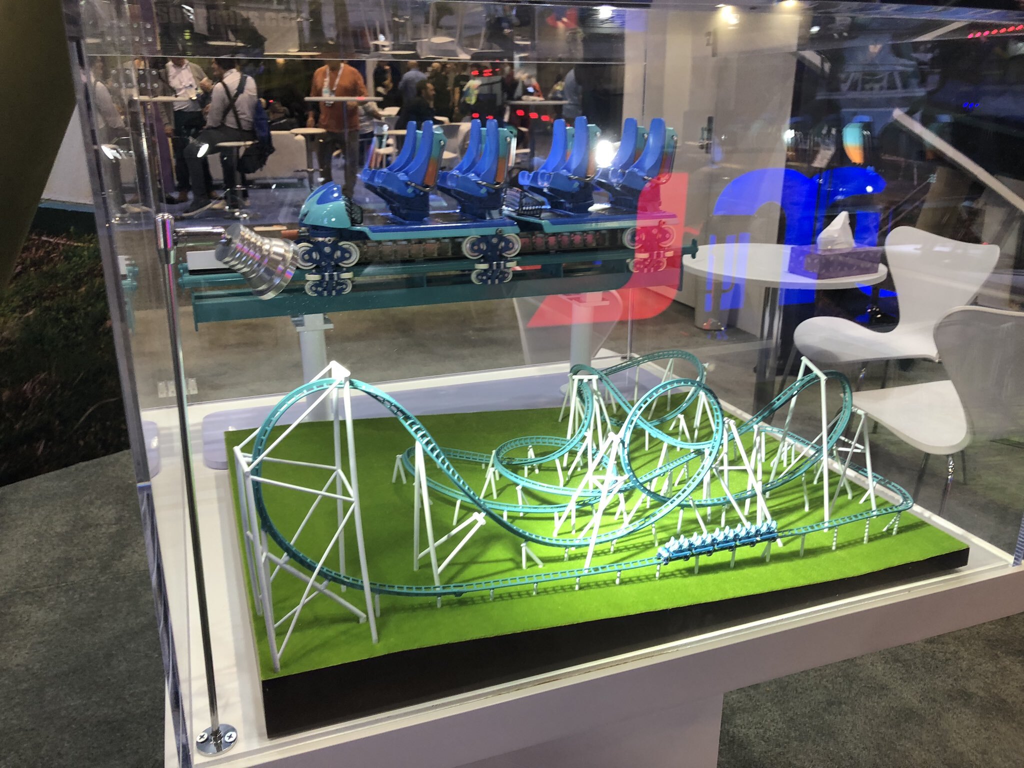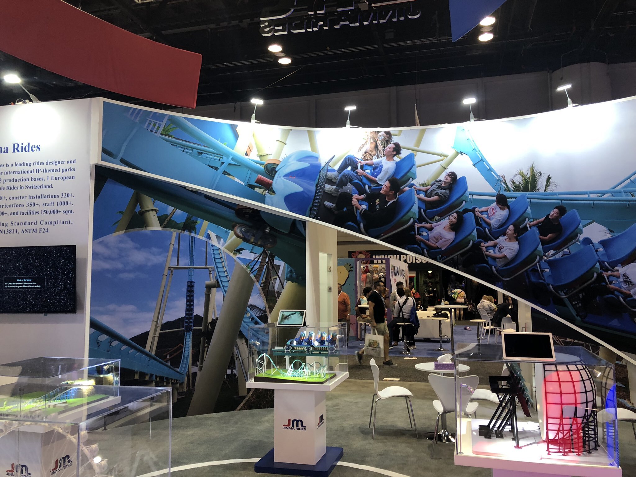 Jinma Rides' booth had multiple models on display for several of their attraction offerings. Models included the LSM Launch Coaster, Flying Theater, Ferris Wheel (170 foot tall variant) and Shoot-the-Chutes layouts as well as a partial train for the LSM Launch Coaster.