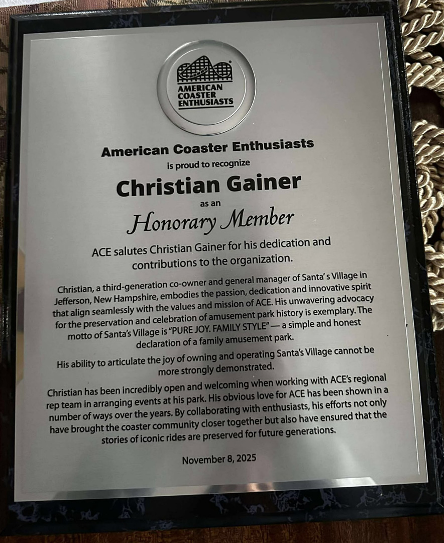 ACE officially introduces Christian Gainer of Santa’s Village (Jefferson, New Hampshire) as an ACE Honorary Member!