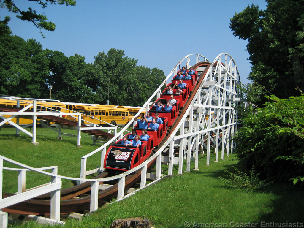 Standing at a maximum height of 60 feet, the 2,150-foot-long ride features Miller's signature camelback, airtime-producing hills, including a thrilling 75-foot first drop. It also includes a tunneled helix with a surprise-ending drop before returning to the station. The coaster was almost completely lost when the loading station and lift hill were destroyed along with several other classic park attractions due to a devastating fire in 1923. Fortunately, the damaged portions of Jack Rabbit were rebuilt for the 1924 season.