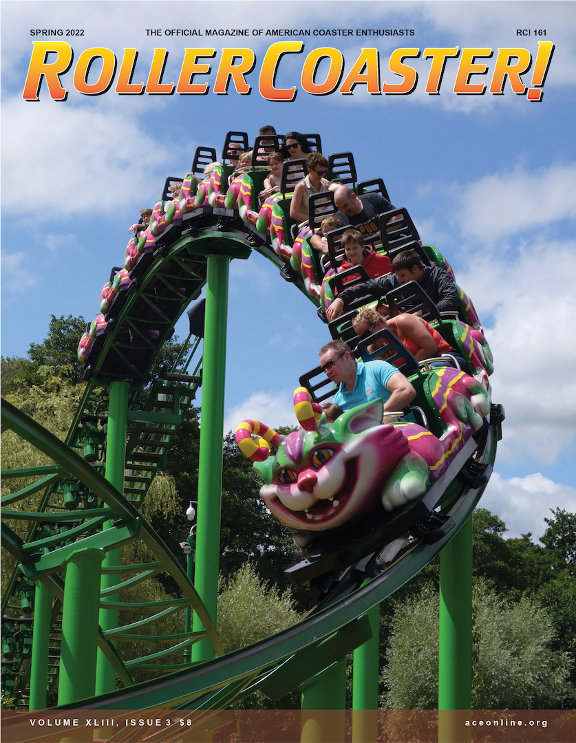 Originally titled Coaster World, the magazine made its debut in the winter of 1979. Volume 1, Issue 1 was little more than a newsletter, all of 12 pages in length with a handful of black and white photos. As the magazine continued, the quality improved in 1982 with Volume 3 featuring a glossy cover and an increase in size to 38 pages. Volume 4 featured a full-color cover and glossy interior pages with a professional-looking layout. in 1984, beginning with Volume 5, the name of the magazine was changed to RollerCoaster!, the title under which it is currently published. Now more than 30 years and over 125 issues later, RollerCoaster! is still going strong. Published four times per year, RollerCoaster! is now in full color and averages 48 pages in length. In-depth articles of parks and coasters of the past and present are highlighted with beautiful photos submitted by ACE members and industry professionals.